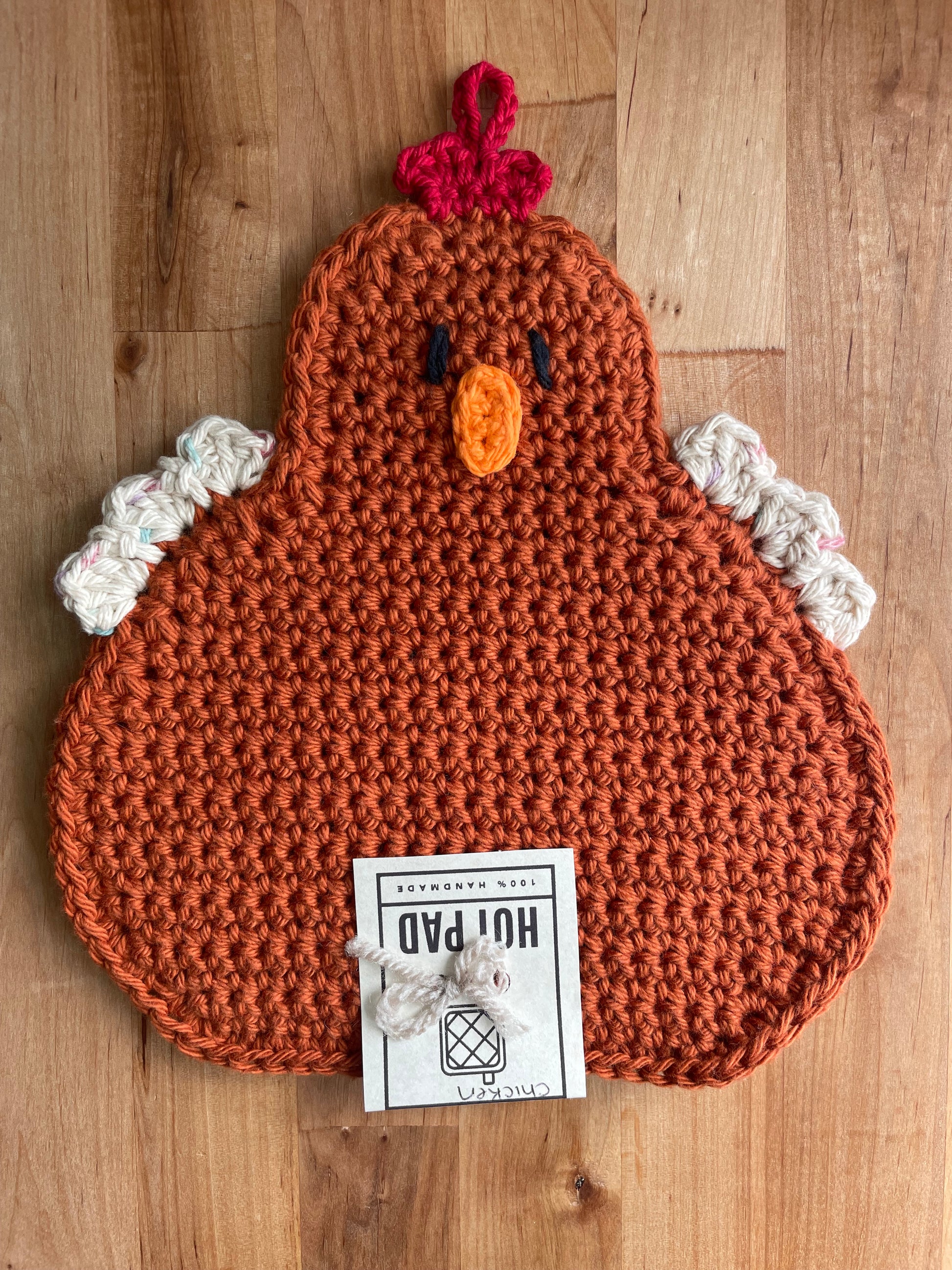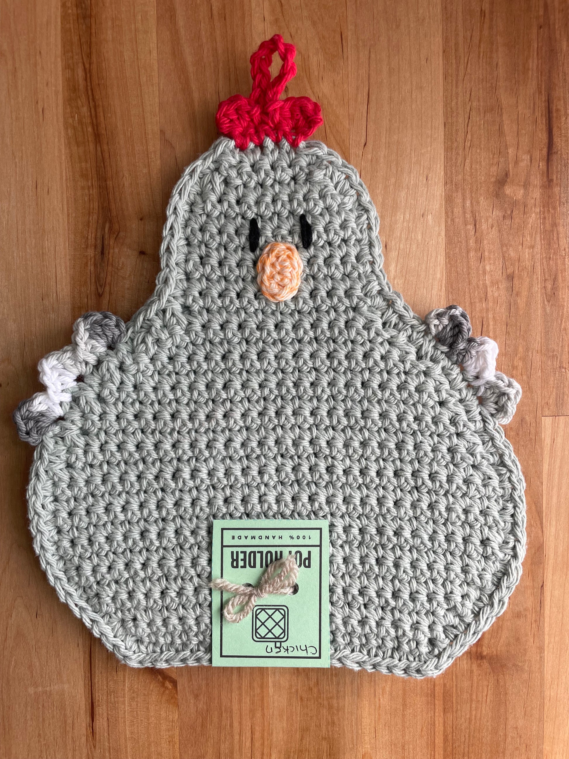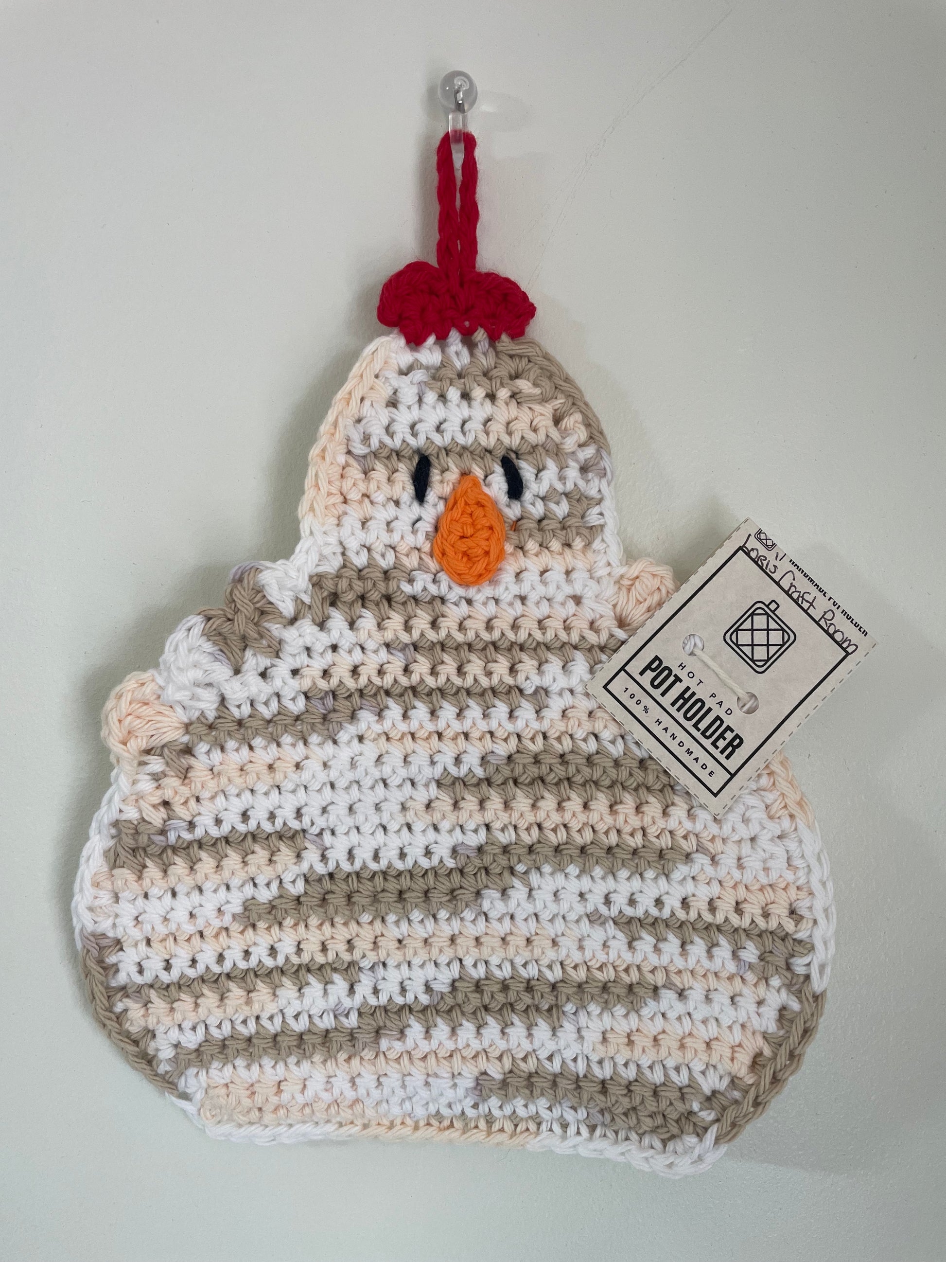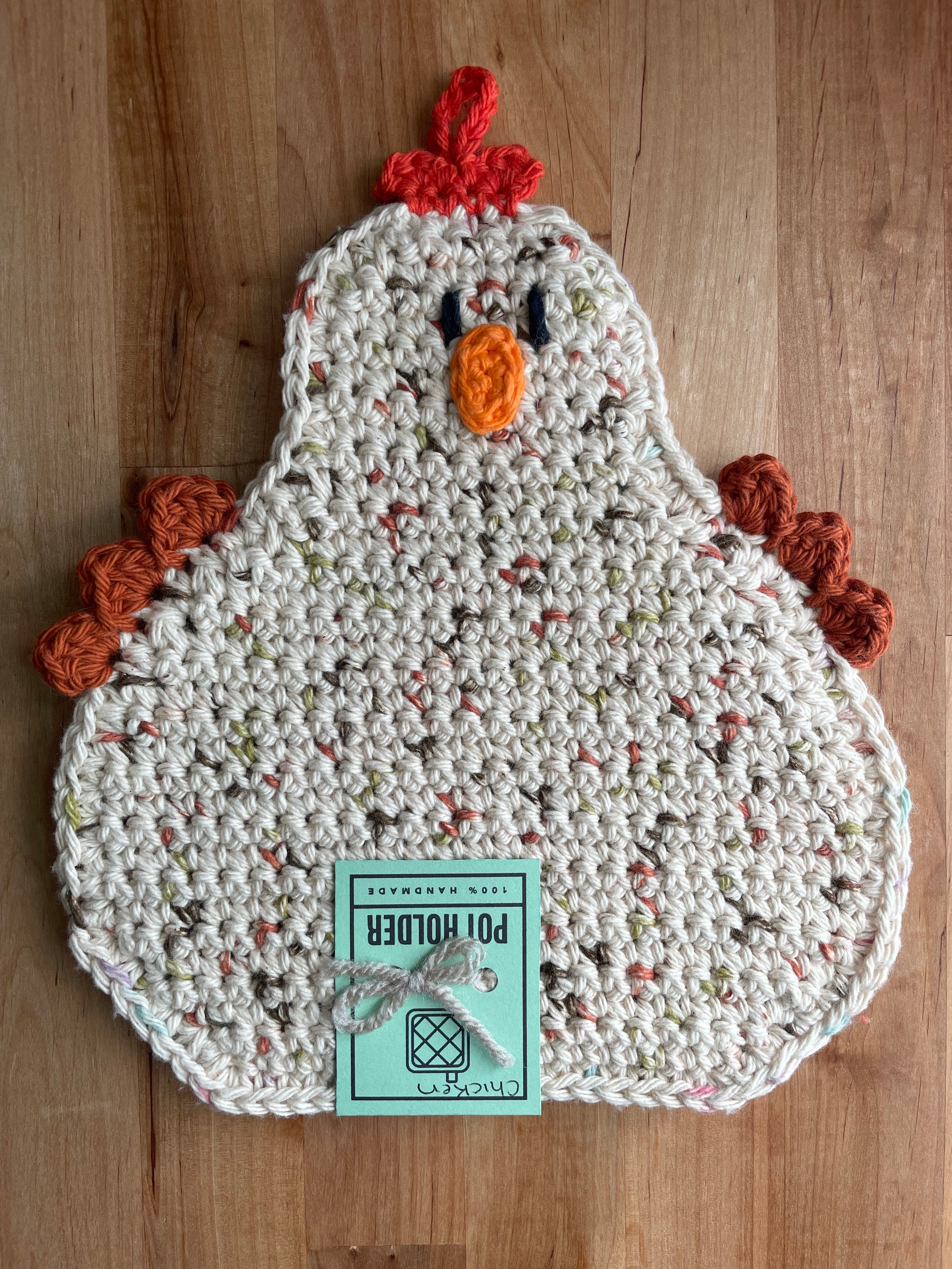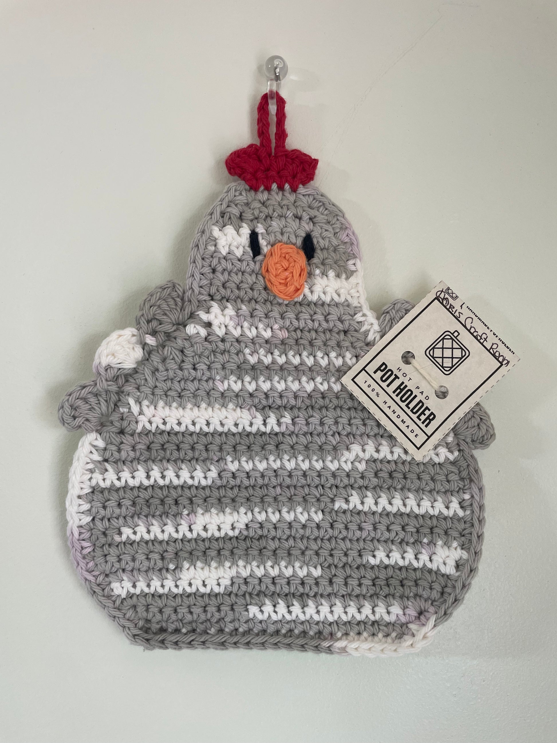 Individually crafted with a personal touch, Lori’s Craft Room offers unique chicken pot holders, each one-of-a-kind due to their handmade nature. These charming crocheted pot holders not only protect your hands but also add a delightful touch of farmhouse or country kitchen charm to your home.