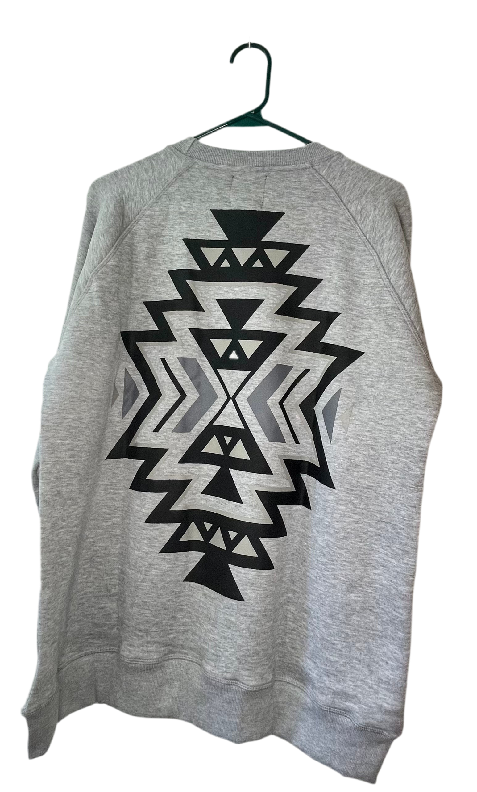 Turn around, and you'll find a captivating abstract design on the back, adding a touch of artistic flair to your outfit. The combination of style and empowerment makes this crew neck the perfect choice for any occasion.