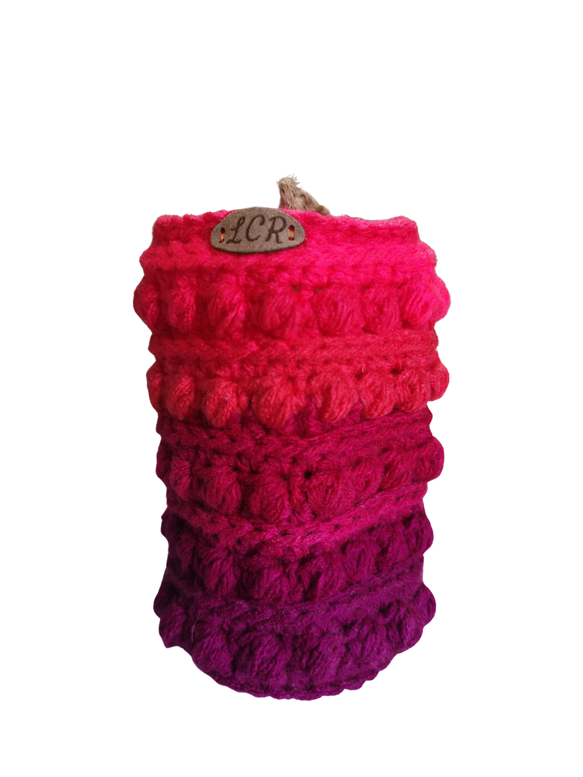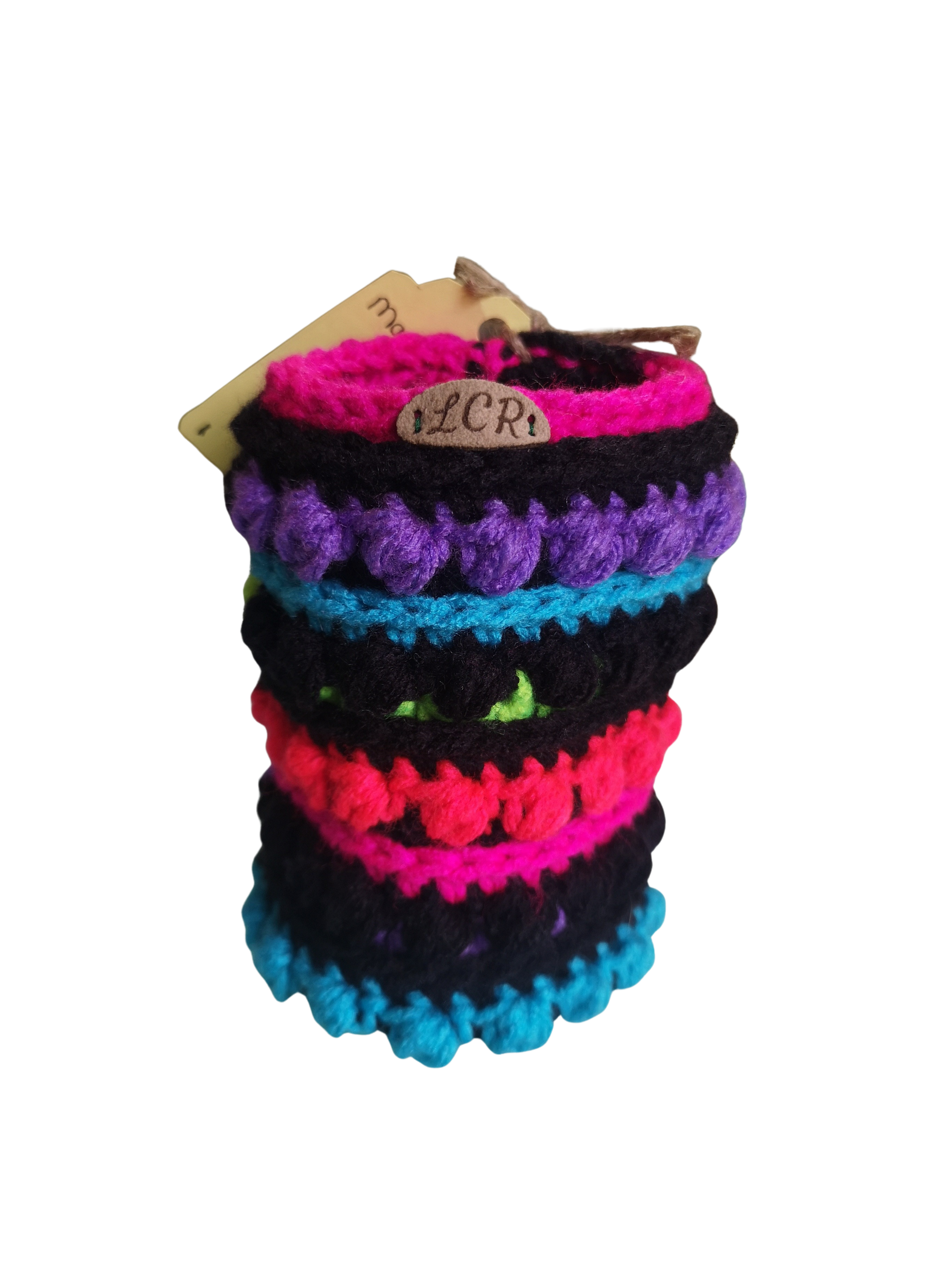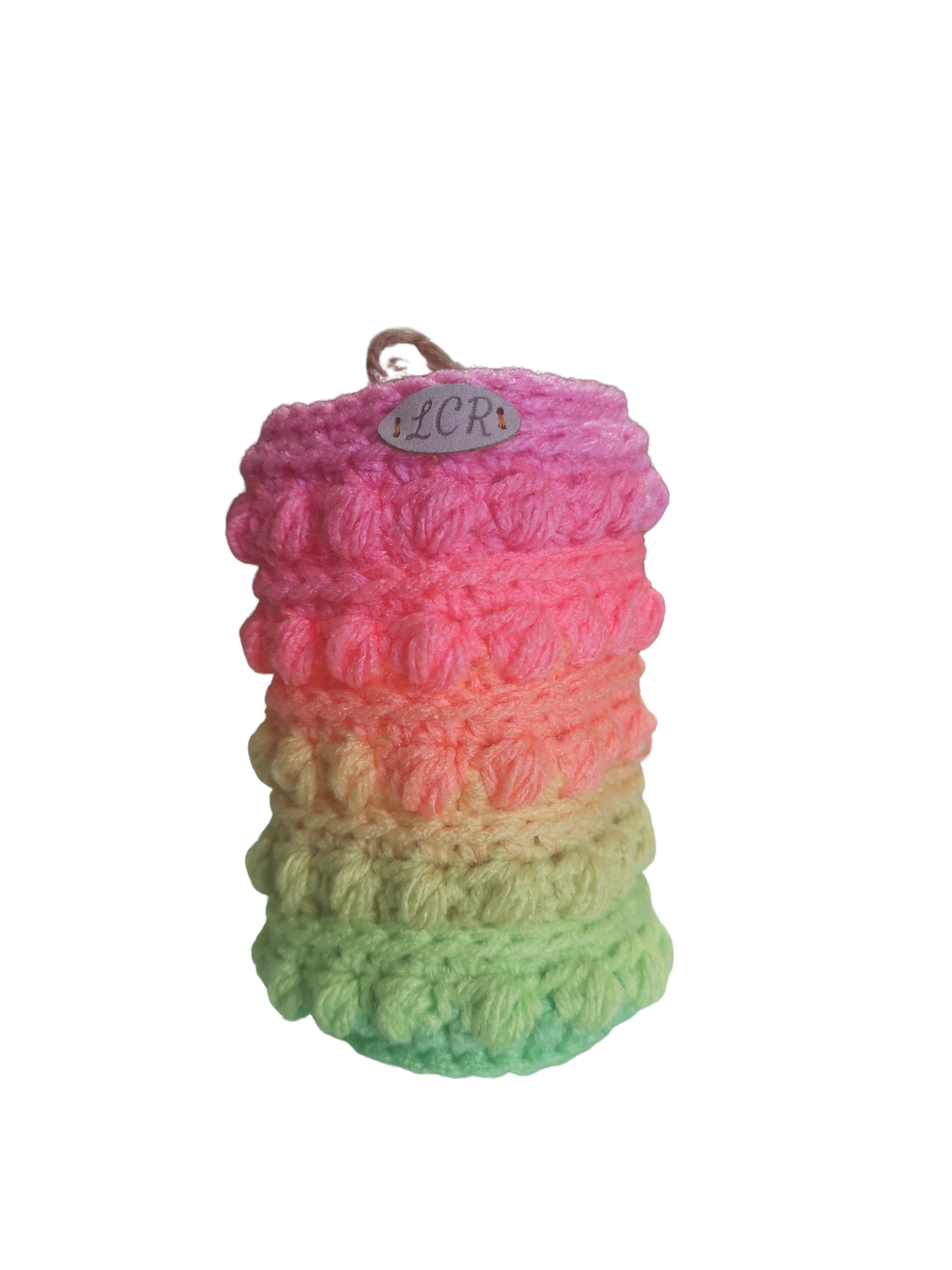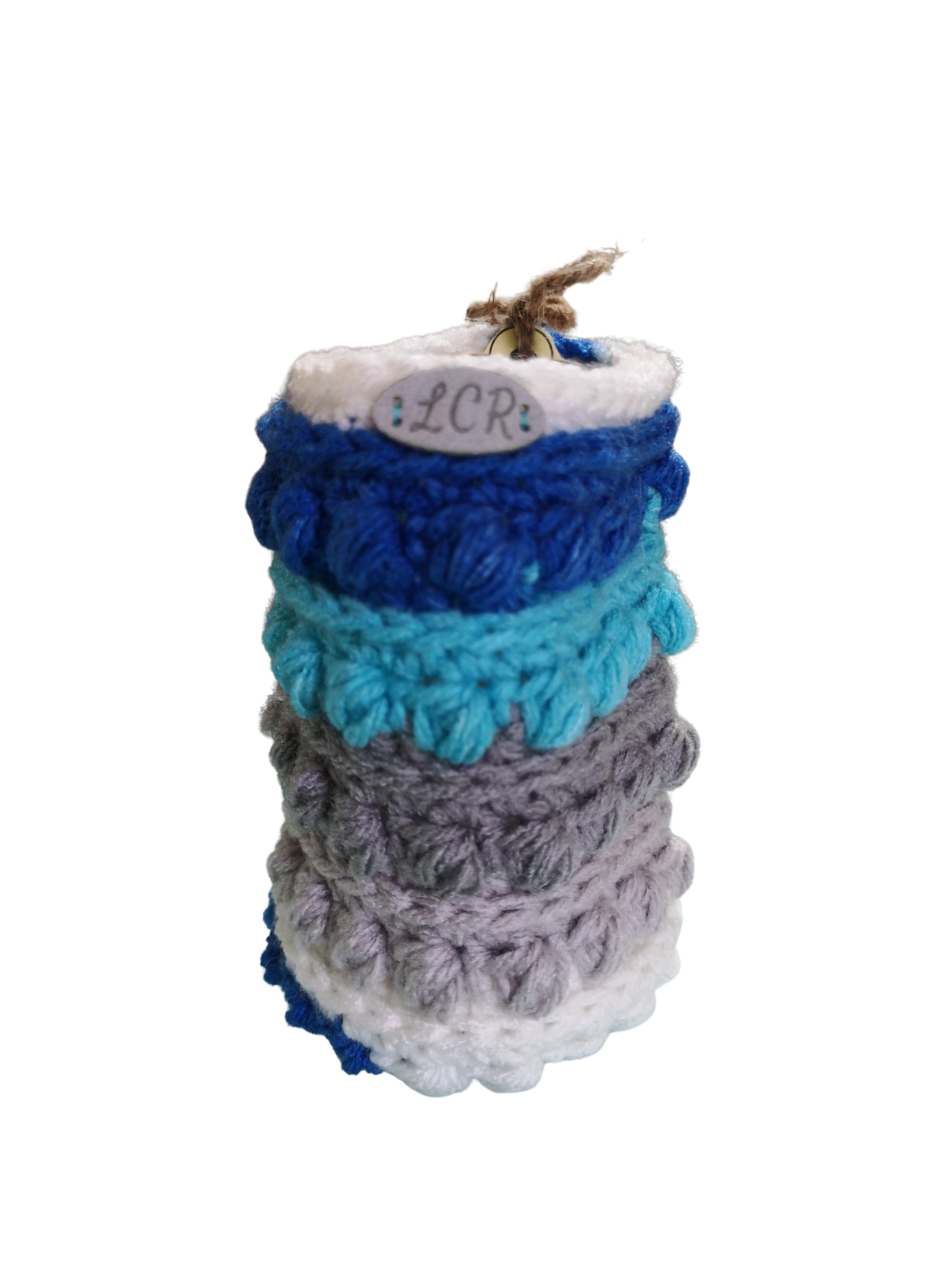 These drink koozies are expertly crocheted by Lori's Craft Room in Centreville, Ontario, using durable acrylic wool for reliable insulation and comfort.