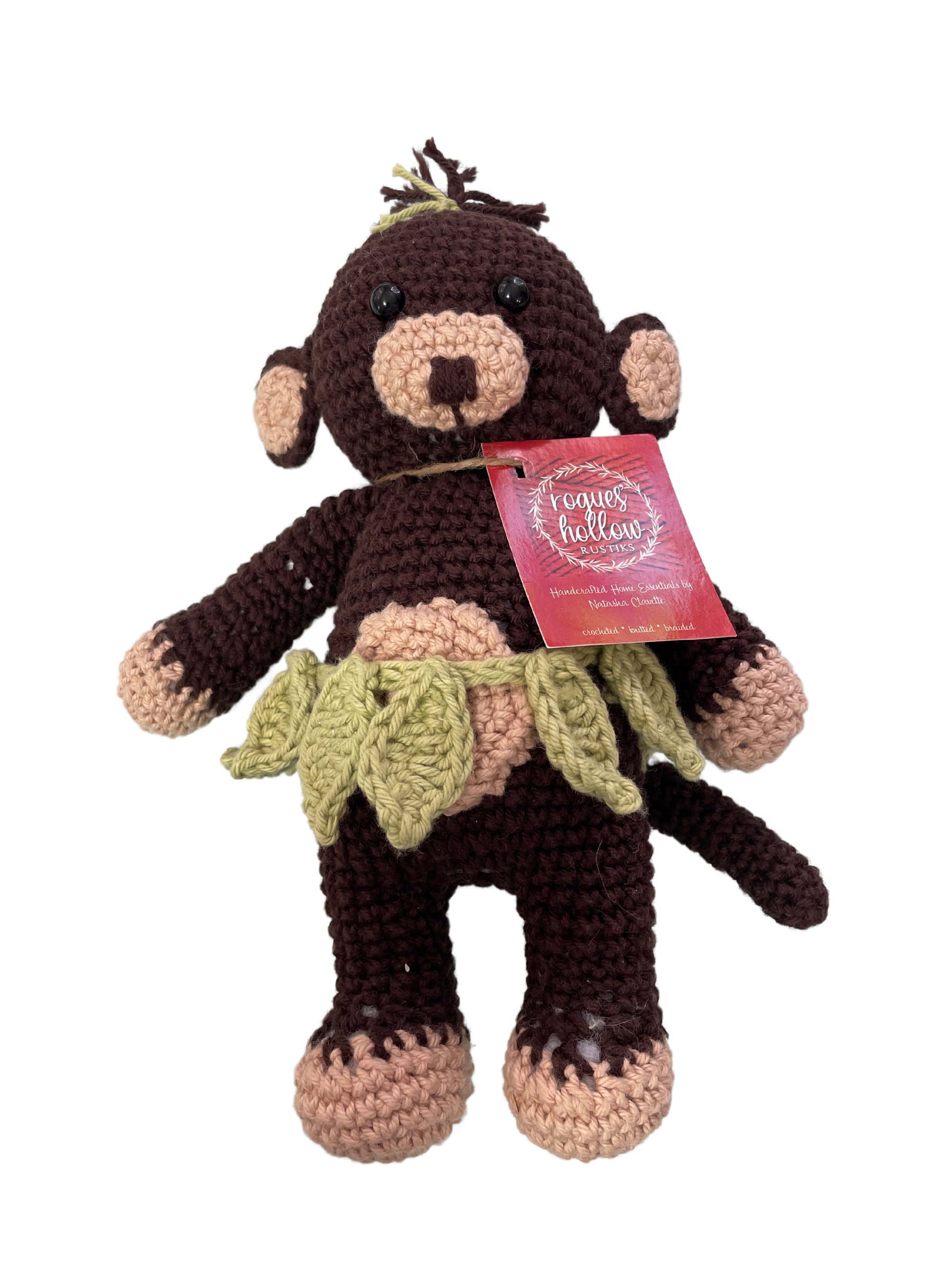 Introducing the playful Crochet Monkey from Rogues Hollow Rustiks! Hand-crafted in Ontario, this unique toy is sure to bring joy to both kids and adults. Add a touch of quirkiness to your home with this lovable monkey.