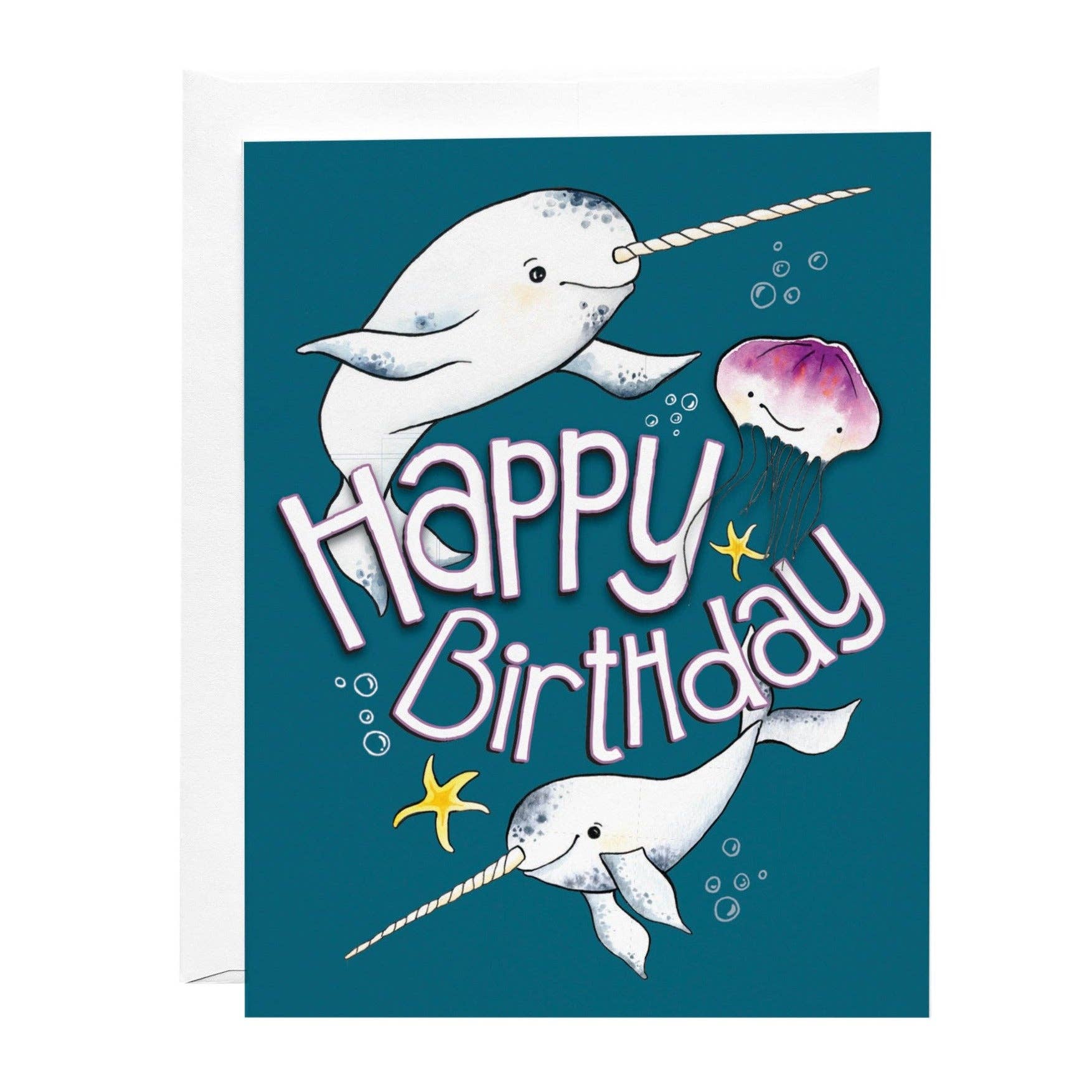 Narwhals and Jellyfish wishing you a Happy Birthday.