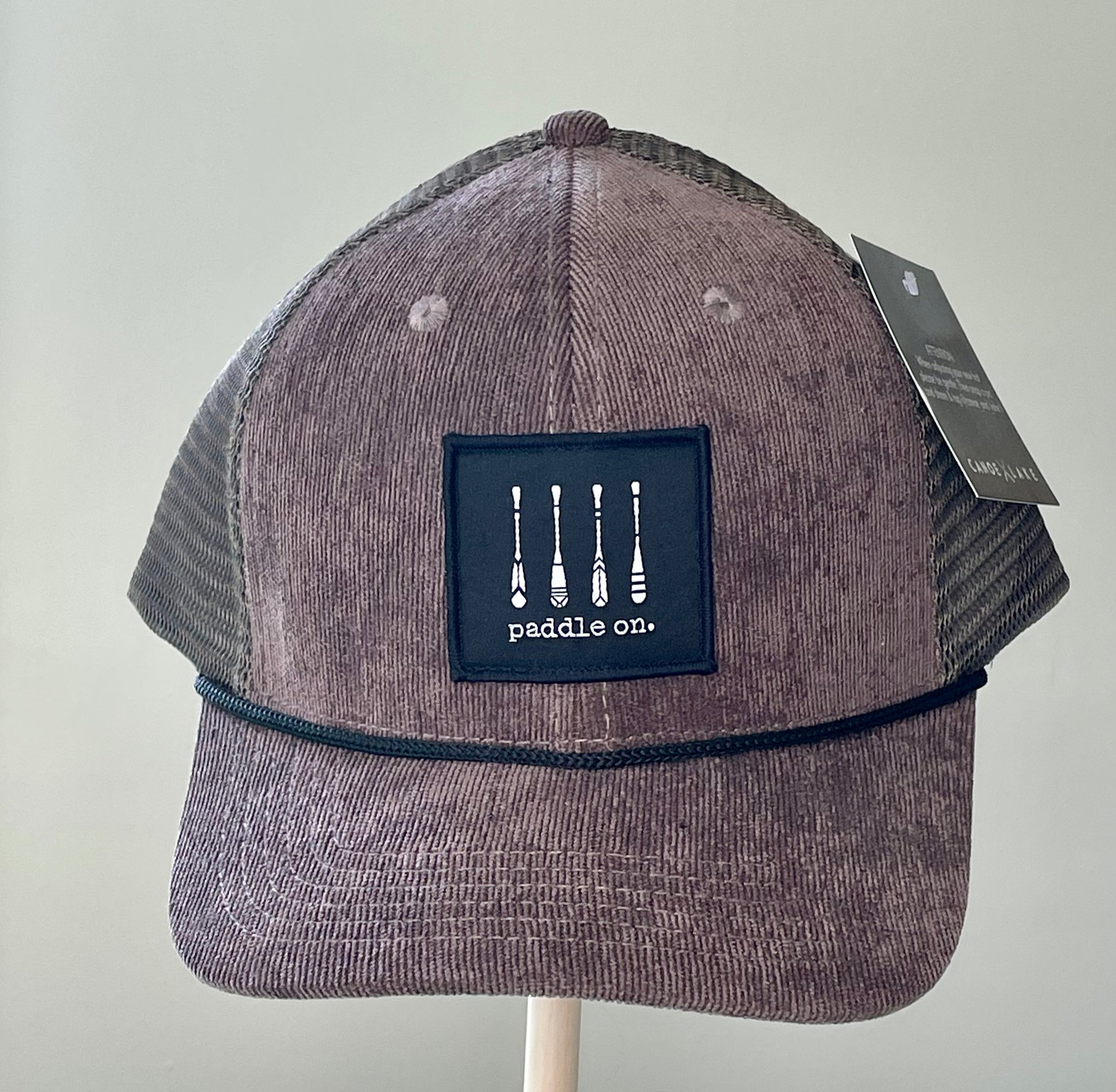 Embrace your adventurous spirit with Canoe and Lake's Grey Brown Cord Mesh Snapback. Featuring paddles on the front and the empowering phrase "Paddle On," this stylish hat celebrates your love for water and exploration.