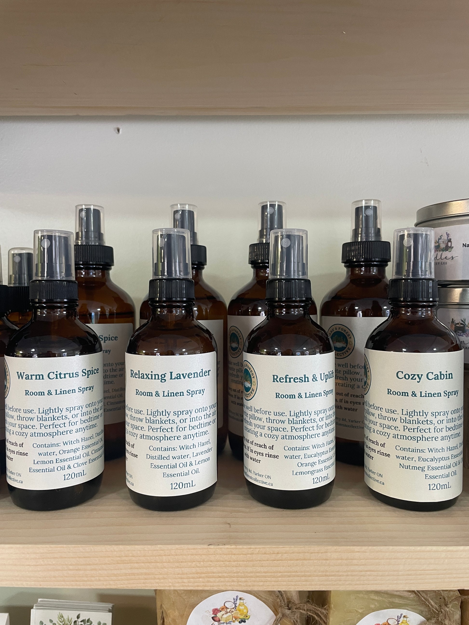 Freshen your space naturally with our handcrafted room sprays, made in small batches in Yarker, Ontario. Each blend features pure essential oils, alcohol-free witch hazel, and zero synthetic fragrances – a clean, non-toxic way to enjoy aromatherapy throughout your home.