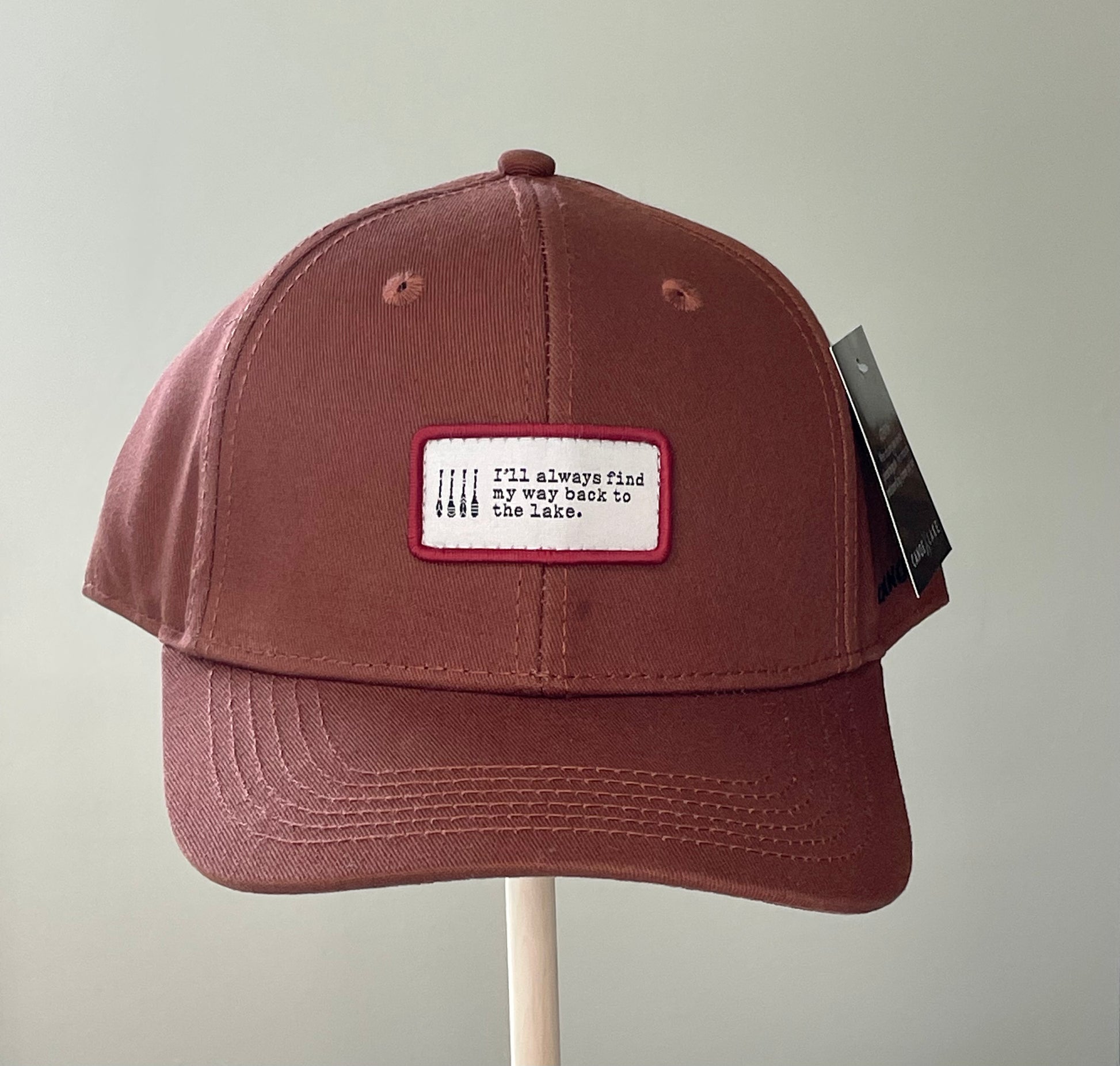 For adventurous adults, the Rust-Colored Snapback Hat by Canoe and Lake is the perfect accessory that reflects your love for the water. With the uplifting phrase "I'll Always Find My Way Back to the Lake" embroidered on the front, this stylish hat celebrates your deep connection to the lakeside allure.