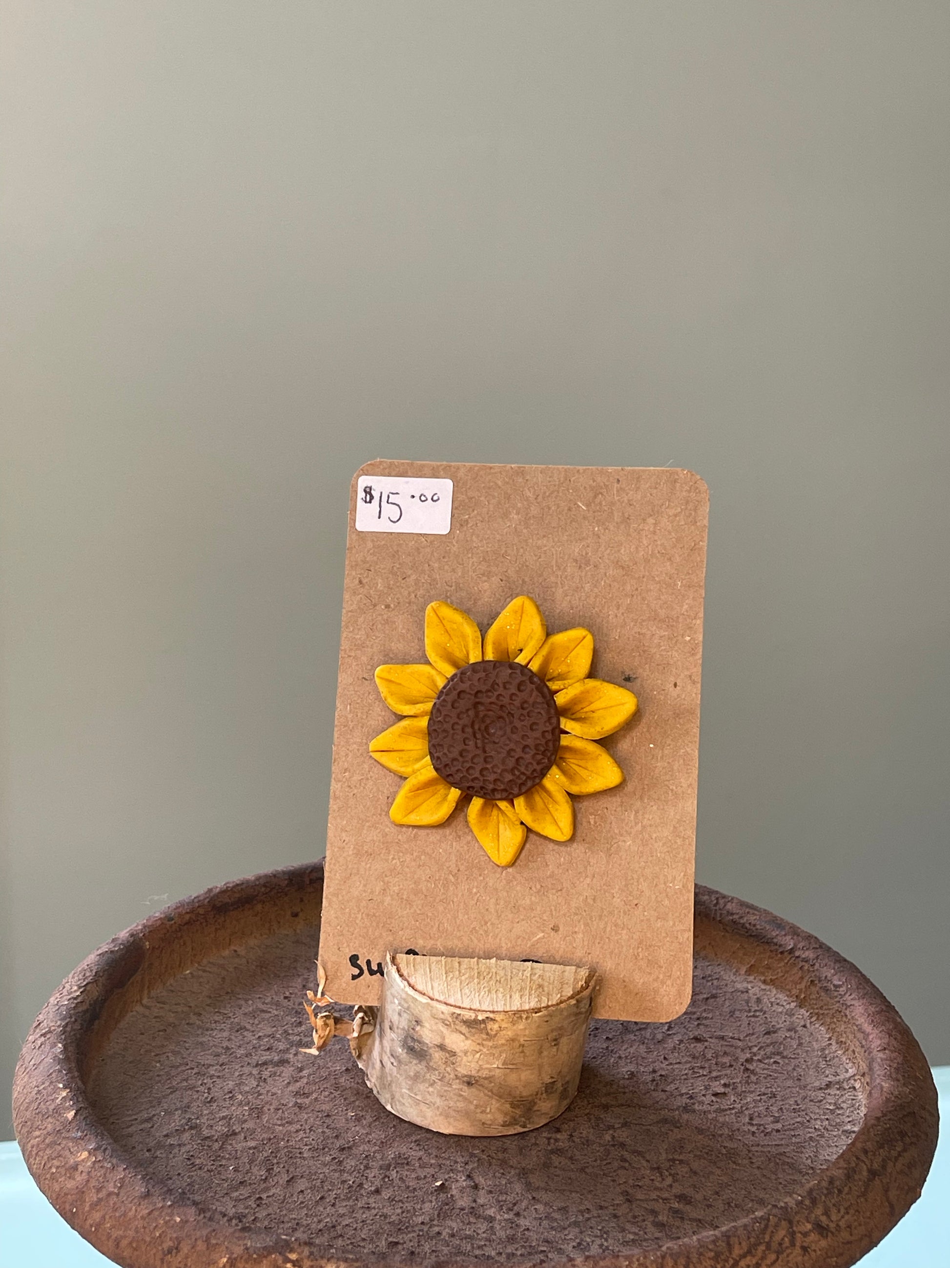 Ignite your spirit with the Sunflower Polymer Clay Pin by Lichen Fairytales. Handcrafted with meticulous care, this radiant accessory encapsulates the essence of nature's golden glow. The intricately sculpted polymer clay showcases the delicate beauty of a blooming sunflower, capturing its vibrant petals and textured center. Wear this enchanting pin as a symbol of joy, positivity, and the eternal sunshine within. Let Lichen Fairytales inspire your style with this captivating piece that brings a touch of whimsy and nature's splendor to any outfit. Embrace the magic of the sunflower and embrace your inner light.