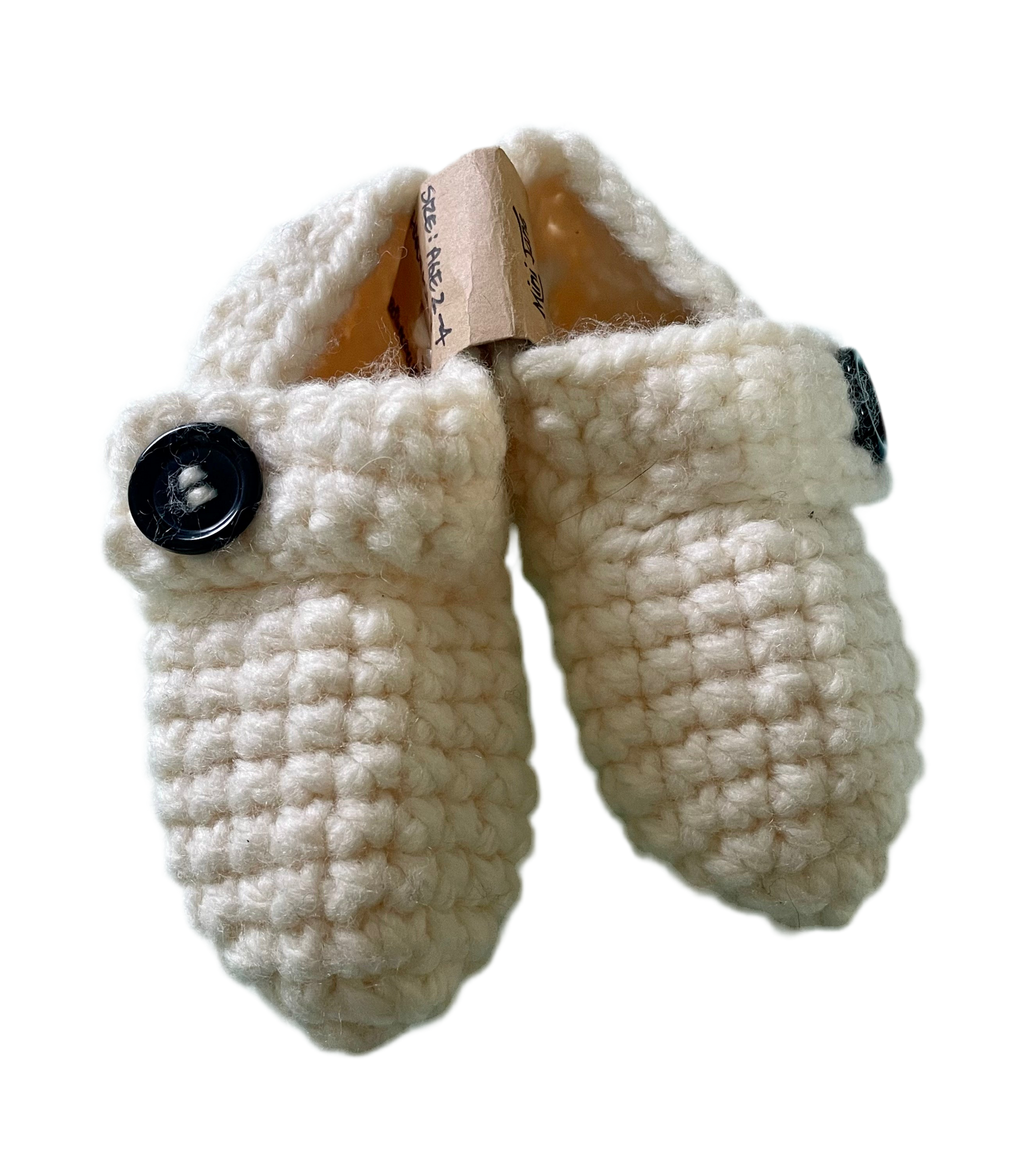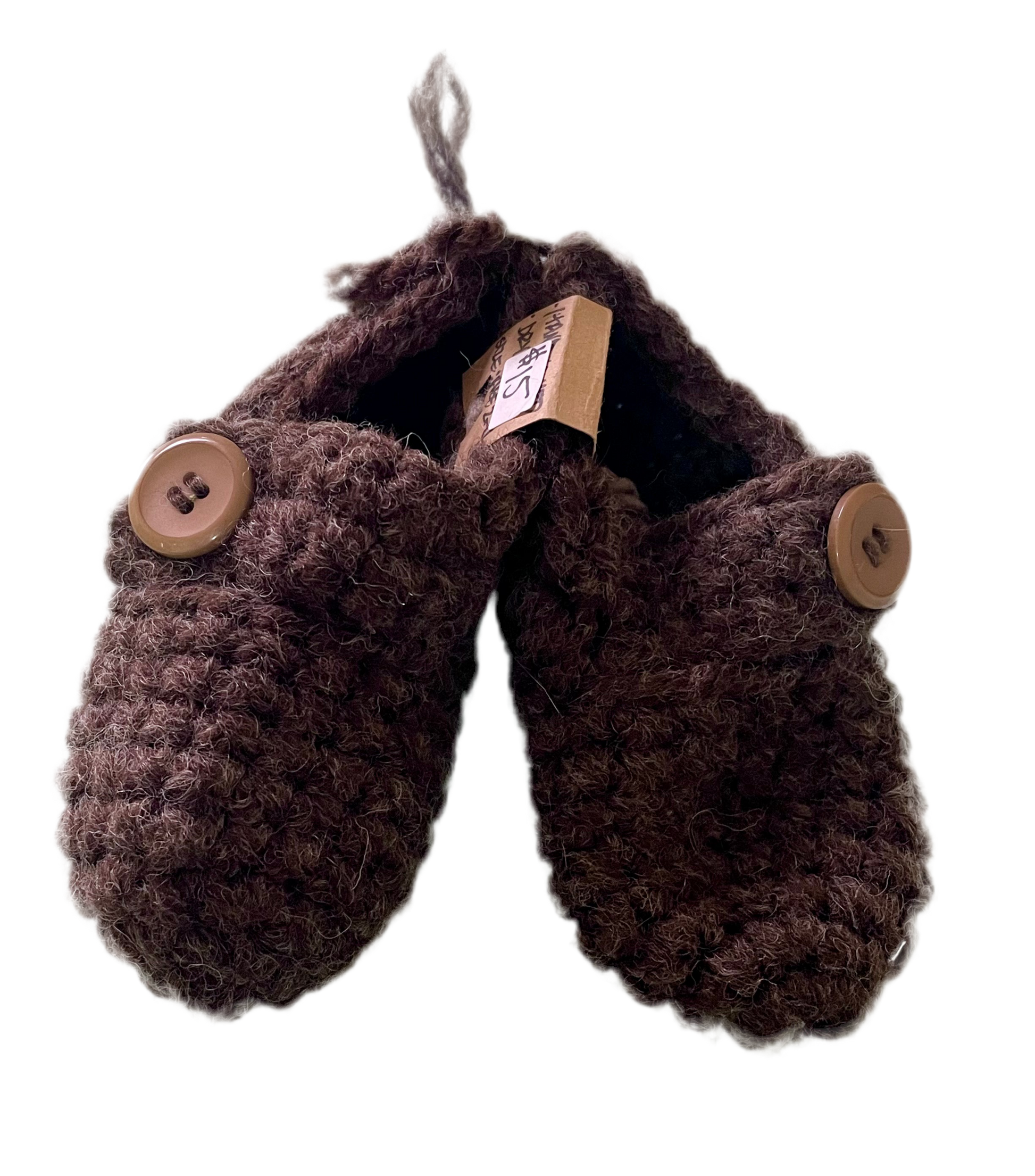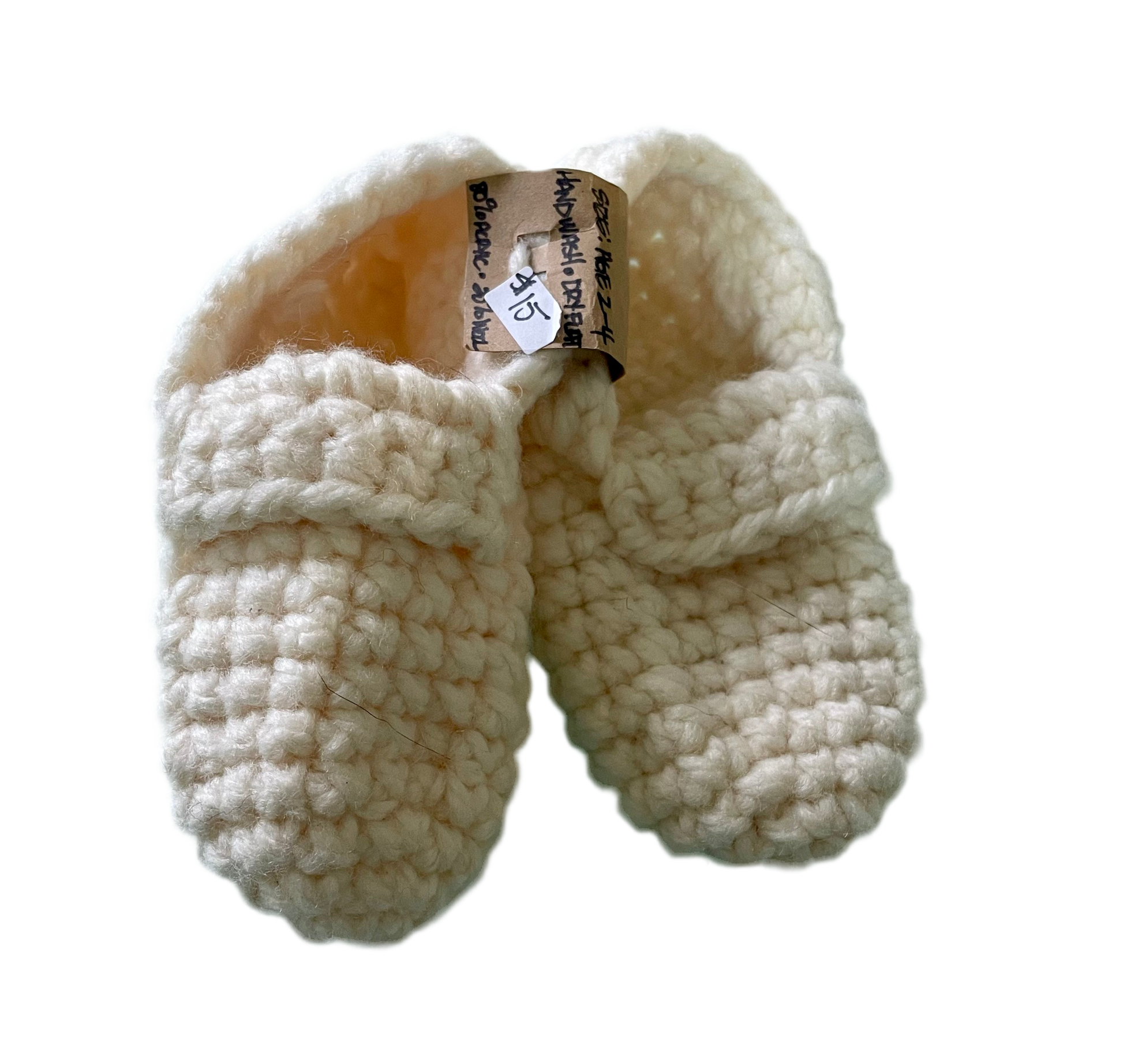 Crafted by Rogues Hollow Rustiks, these toddler slippers are a cozy delight. Crocheted with heavy yarn, they are designed to keep your little one’s feet warm and snug. These slippers, perfectly sized for children aged 2-3 years, are a charming addition to your child’s winter wardrobe. Keep those tiny toes toasty with Rogues Hollow Rustiks toddler slippers.