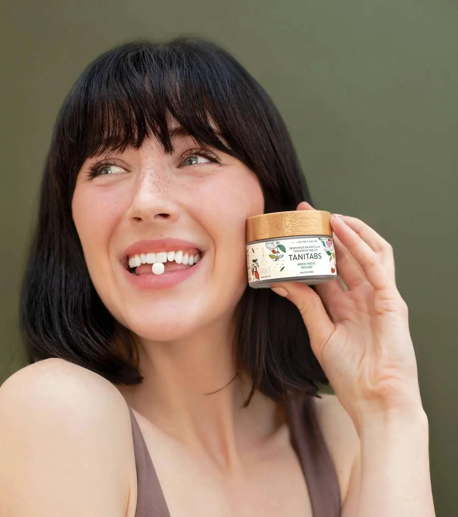 CLEAN & PROTECT TEETH WITH NATURE Give up non-recyclable toothpaste tubes forever with TANITABS, made with science-backed ingredients. Working for happier oceans one smile at a time without any plastic waste. With vegan nHAp, organic xylitol, and plant extracts for a powerful clean and effective protection.