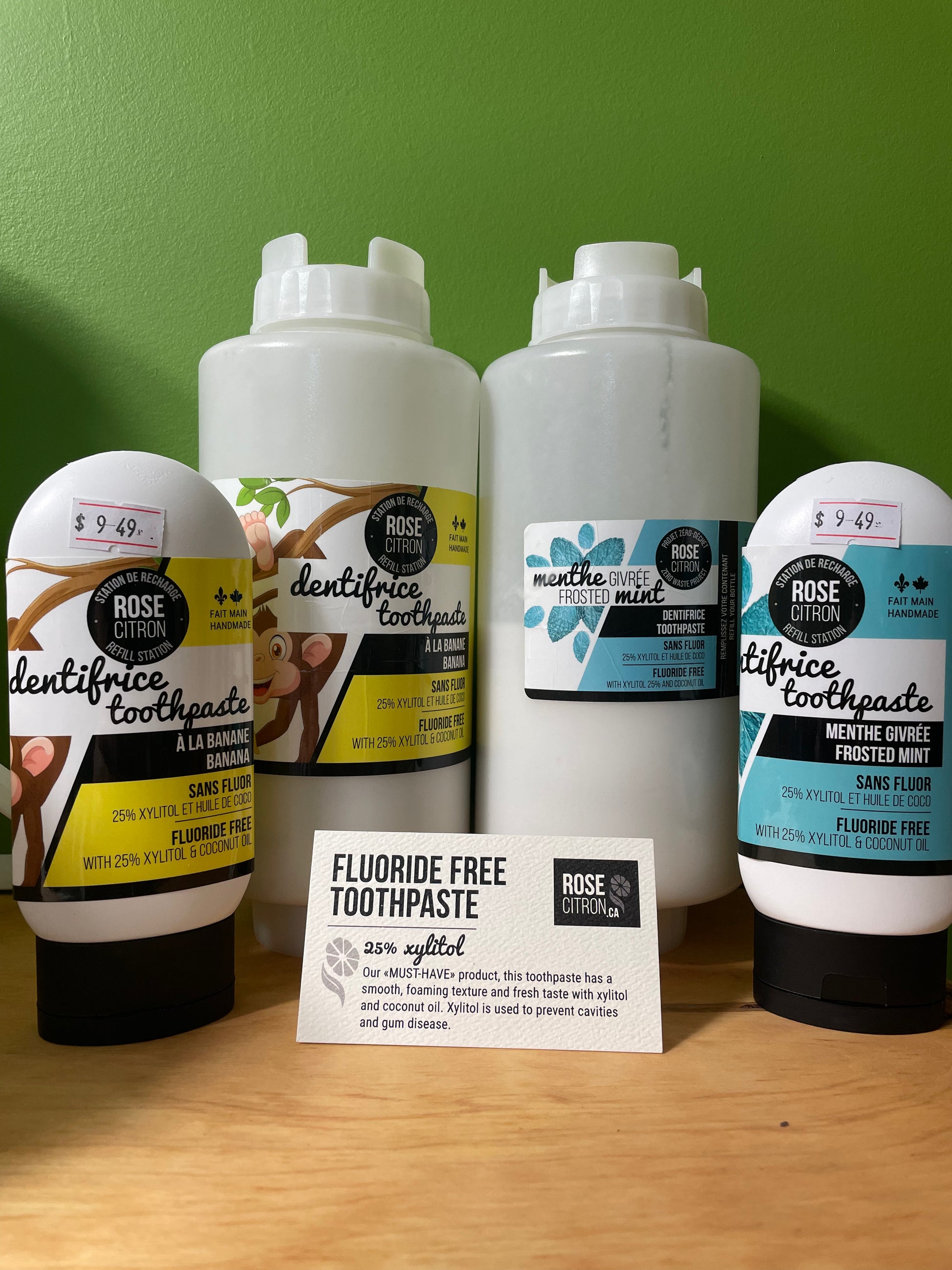 RoseCitron Toothpaste at Lake and Forest Collectives Refillery offers an eco-conscious dental care solution. Available in a 150g bottle, please note that it includes a $1.99 charge for the bottle, which can be refilled in-store.